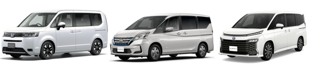 - 全高 ヴォクシー 1895mm、セレナ 1865mm、ステップワゴン 1840mm