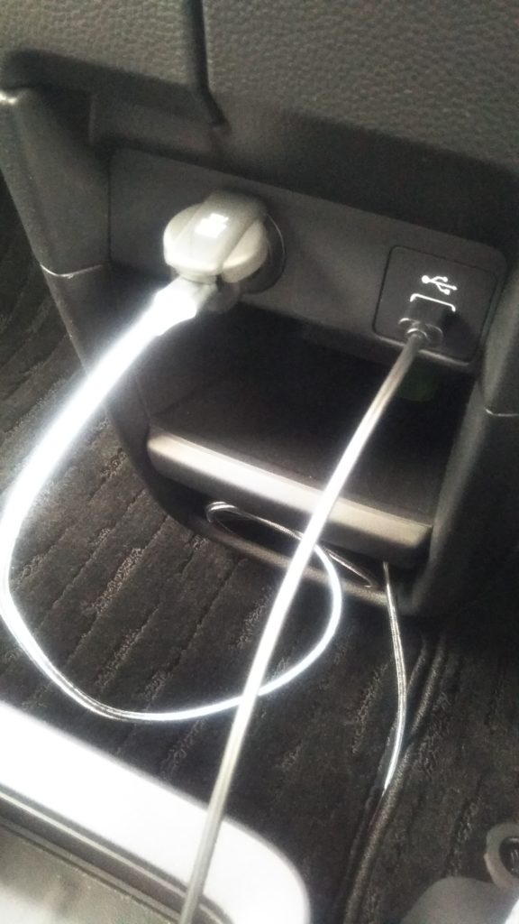 バックモニターは別途電源が必要で、USB 片側cタイプ、反対側Aタイプのケーブルを使用して、バックモニター側はcタイプ、反対側のAタイプを12Vのシガーソケットに接続します。