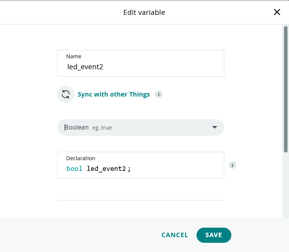 Thingsの作成で、Edit variableでBoolean(真(true)または偽(false)の2つの値のみを取れる論理型)を選択します。