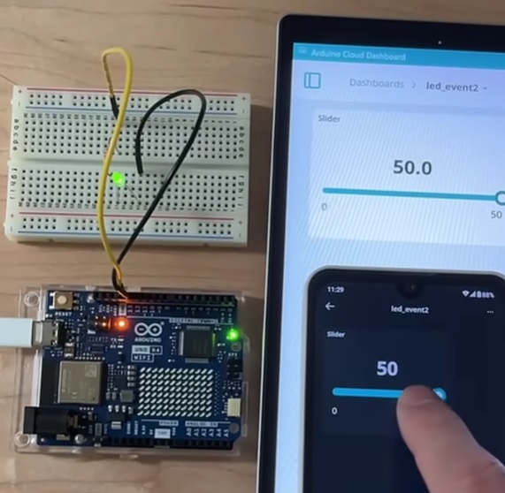 Arduino Cloud(アーデュイーノクラウド)アプリからSlideWidget(スライドウィジェット)でLEDの明るさを調整していきます。