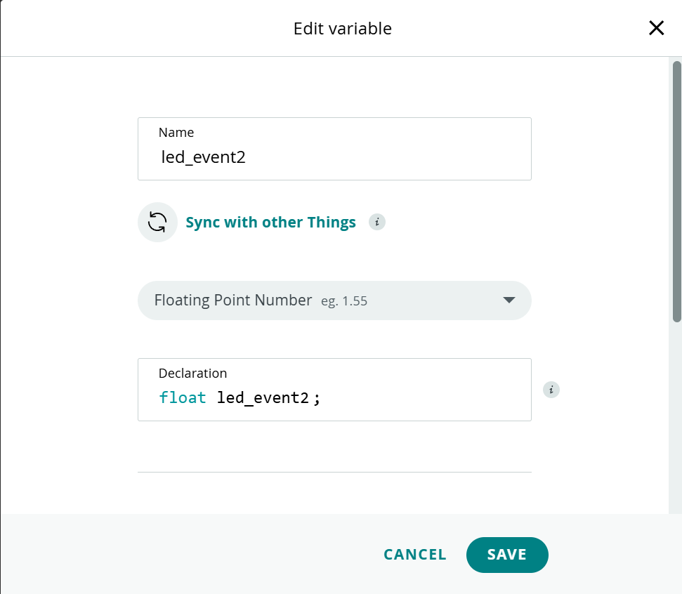 Thingsの作成で、Edit variableでFloat(数値データ型で小数点以下を含む実数値を表現できる)を選択します。